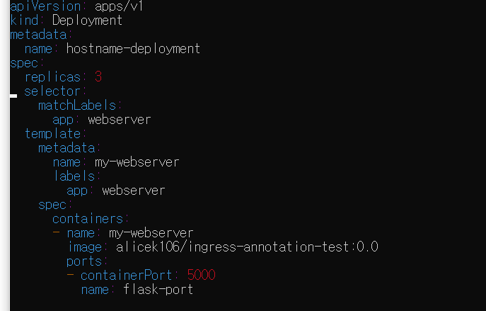 테스트용 디플로이먼트 생성을 위한 YAML파일(hostname-deployment.yaml) 작성
