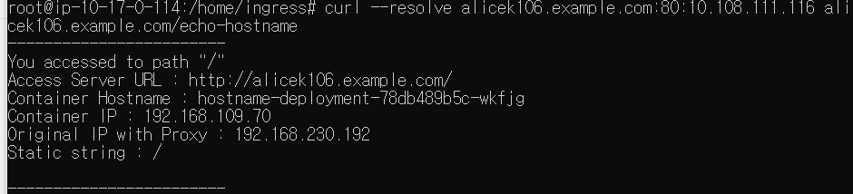 # curl --resolve alicek106.example.com:80:10.108.111.116 alicek106.example.com/echo-hostname